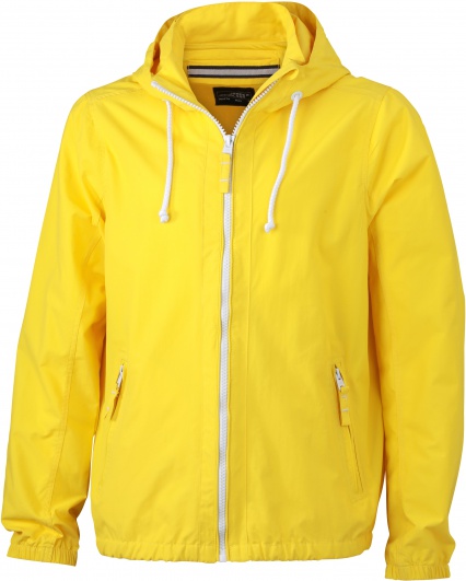 Young functional allweather jacket. Outer fabric: 100% Polyester. Sturdy, wind- and water-repellent fabric (1,500 mm water column). Hood with cord. 2 zipped side pockets. Full-length storm flap with chin-cup. Zips and cord in contrasting colour.