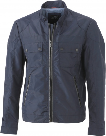 Trendikas meeste biker-stiilis jakk. Pealmine materjal: 100% polüamiid, vooder: 65% polüester, 35% puuvill, varruka vooder: 100% polüester. Lihtsalt hooldatav ja vettpidav materjal. Tormikaitsega lukk, 2 rinnataskut trukkidega, 2 lukuga küljetaskut ja sisetasku. Seesmine vooder teksa-stiilis. Olemas ka kergelt taljesse lõikega naistele mudel- JN1093. Tarneaeg: 5-7 tööpäeva!
