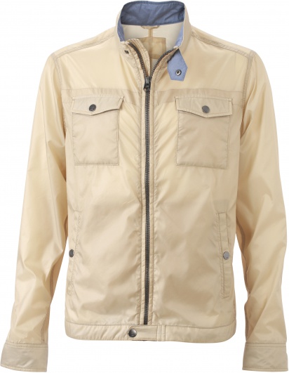 Trendikas meeste kerge jakk. Pealmine materjal: 100% polüamiid, teksa detailid: 65% polüester, 35% puuvill. Lihtsalt hooldatav, vettpidav materjal. Krae siseäär, vöökoht ja varrukakätised teksariidest detailidega. 2 rinna- ja küljetaskut trukkidega, ilma voodrita. Samades toonides olemas ka naistele taljesse lõikega mudel - JN1095. Tarneaeg: 5-7 tööpäeva!