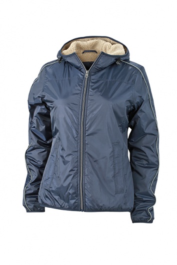 Outer fabric: 100% polyester. Lining: 70% polyester, 30% polyacrylic. Wind- and water-repellent rip-stop fabric (1,500 mm water column) with TPU-coating. Warm teddy lining. Adjustable hood Zipped side pockets and inner pocket. Contrasting border on hood, hem and sleeves. Reflective piping on sleeve. Zip for decoration at the back. JN1103: lightly waisted. OLEMAS KA MEESTE MUDEL - JN1104. Tarneaeg: 5-7 tööpäeva!