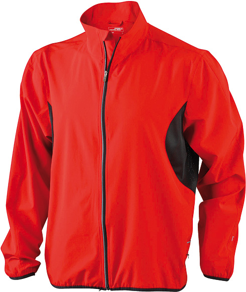 92% polüester, 8% elastaani, võrkmaterjal: 100% polüester, elastne ja kerge polüester materjal, kiirelt kuivav ja niiskust reguleeriv, tuule- ja veekindel, hingav, lukul helkurribad, kontrastses toonis võrk kaenla all ja seljal, 2 väikest küljetaskut, helkurdetailid ees, taga ja varrukatel.