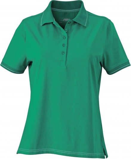 Naiste elastsest materjalist polosärk kontrastse triibuga krael ja käistel.