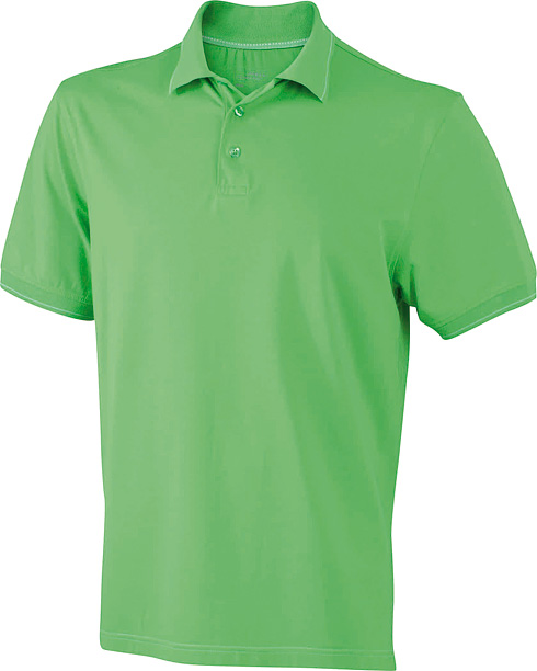 Meeste elastsest materjalist polosärk kontrastse triibuga krael ja käistel