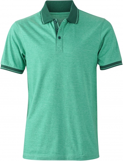 Melange polo shirt with fashionable details. Outer fabric (170 g/m²): 65% polyester, 35% cotton. Fine single jersey, very comfortable. Casual cut. Knitted polo collar and sleeve-bands with contrasting stripes. JN705: lightly waisted, 5 buttons. JN706: 3 buttons. OLEMAS KA NAISTE MUDEL - JN705. Tarneaeg: 5-7 tööpäeva!