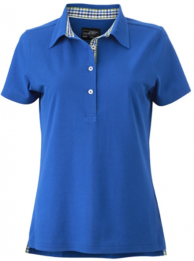 Trendikas naiste polosärk. Materjal: 100% harjatud puuvill, kaal: 195 g/m². Klassikaline hea pikee materjal, ruudulisest materjalist detailid nööbiliistul ja krael, 4 kontrastses toonis nööpi. OLEMAS KA MEESTE MUDEL - JN964. Tarneaeg: 5-7 tööpäeva!
