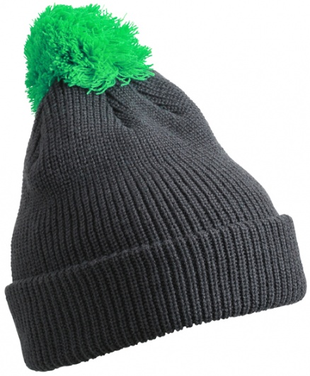 Knitted hat with brim and pompon