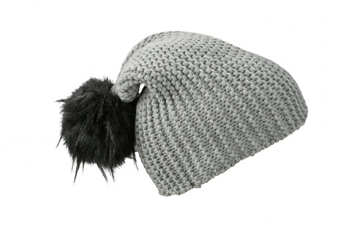 Outer fabric: 100% polyacrylic. Imitation fur: 70% polyacrylic, 30% polyester. Purl knitting with continuous seam. Fake fur pompond Weight: 90 g